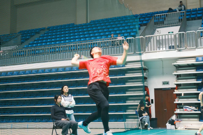 在半决赛中我们直面强敌心理学院。队员们互相鼓励,全力以赴,展现出“遇强则强,永不放弃”的坚韧精神。特别是男单选手李泽龙,尽管膝盖不适,仍以小局2:1的成绩勇夺半决赛的关键一分,为队伍拔得头筹。最终,英国正版365官方网站取得了羽毛球赛第四名的好成绩。