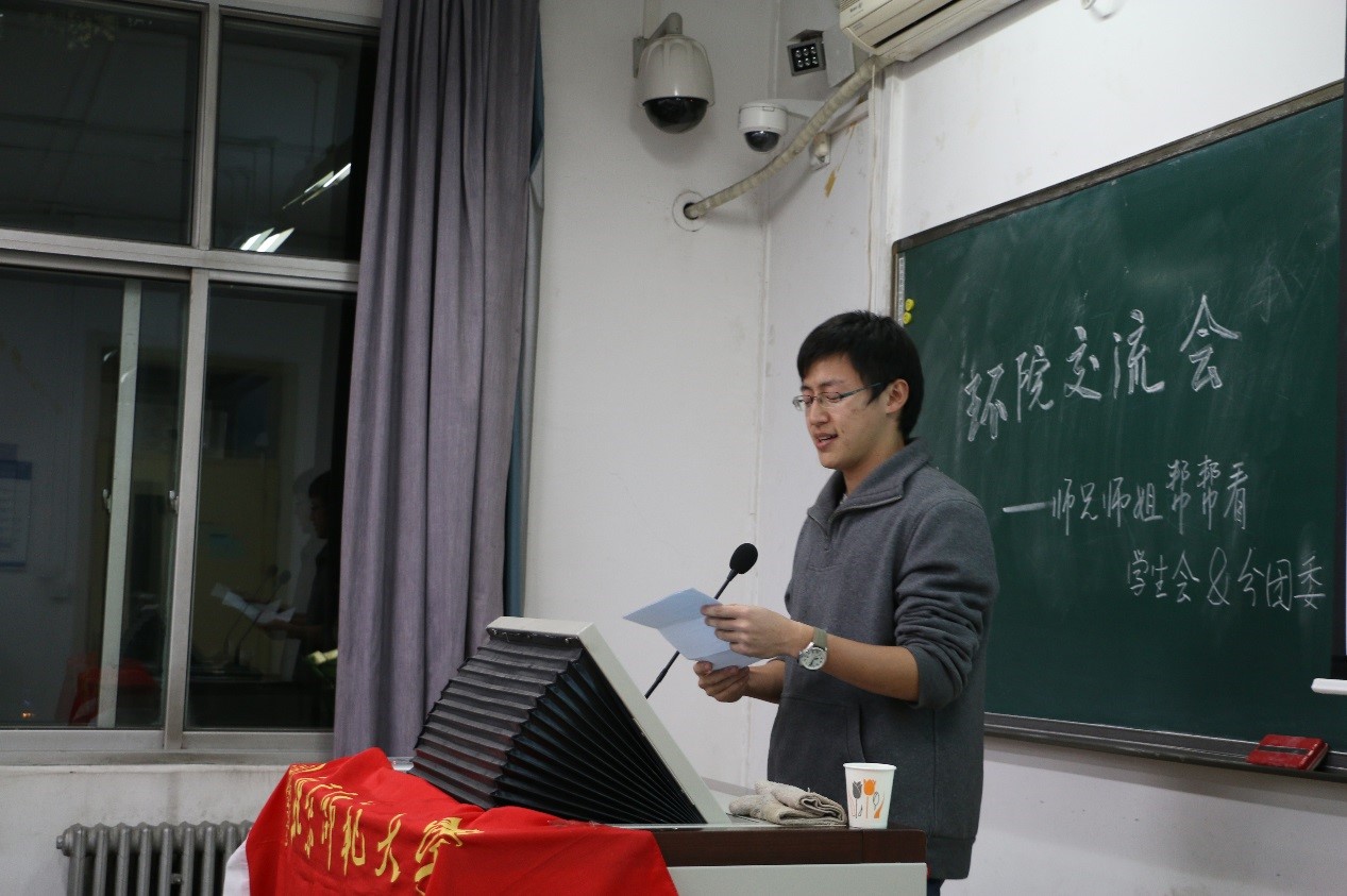 12月15日晚八点,由英国正版365官方网站院会学业部和分团委联合举办的“环院交流室之师兄师姐帮帮看”活动在教二203顺利举行。本次活动共邀请到武晓宇、郭倚天,刘夏和刘芦萌四位师兄师姐。活动现场气氛十分活泼。
