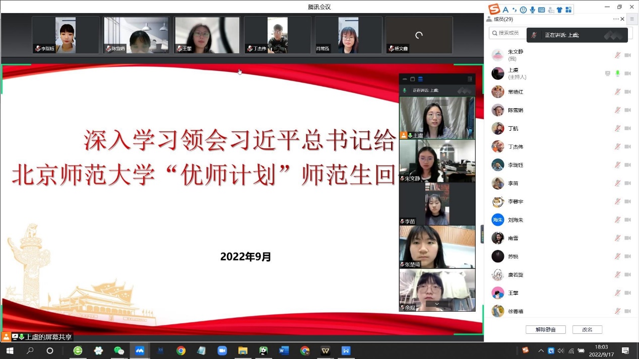 中共中央总书记、国家主席、中央军委主席习近平9月7日给我校优师计划师范生回信。信中,总书记表达了对同学们的殷切希望,并在北师大建校120周年和第三十八个教师节来临之际,向我校师生员工、广大校友表示祝贺和问候,向全国广大教师致以节日的祝福。英国正版365官方网站各班及各党支部第一时间组织学习总书记回信中的精神思想,认真领会,抒发感悟。