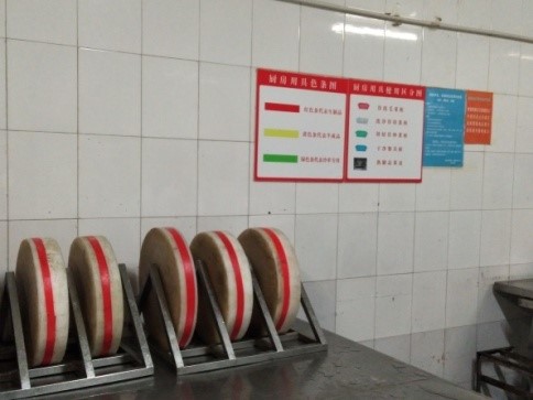 此次共参观了新乐群食堂、学五食堂、三为轩、三棵树等餐厅的后厨工作。学校食堂虽然很忙很忙,但还是井然有序的。东西都是分门别类的放好并贴有十分细心的小标签,还有各种各样的水池,东西都是分开洗,工具也是各有用处不会混用,用不同颜色的篮子来区分种类。当然,所有工作人员都是持证上岗,由学校统一体检的。