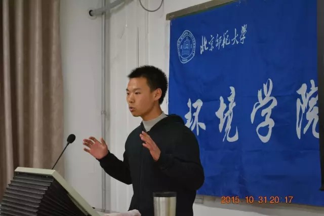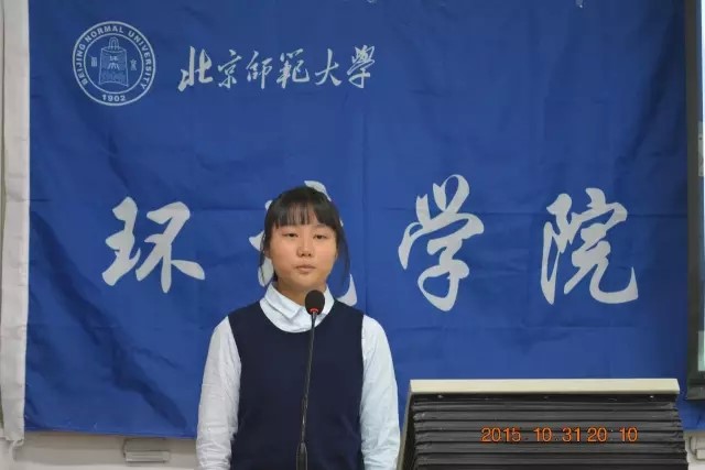 b 十月三十一日晚八点,北师大第二届“青年说”演讲比赛英国正版365官方网站初赛于教二106准时开赛!此次比赛有幸请到英国正版365官方网站教授董世魁,副教授田光进,分团委书记毕艳林,以及博士生史璇担任评委。为彰显环院特色,初赛主题为“绿色”,每位选手进行5分钟的演讲,由评委依据演讲内容,语言,形式等标准进行打分。下面一起领略八位选手的卓越风姿。