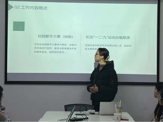 随后各部部长总结了所属部门上一学期开展的工作,分享了部门工作经验,并对新学期工作安排及预期成效进行了详细说明。通过汇报,学生会成员对目前工作进度及部门联系有了清晰认识,为今后工作的开展打下了扎实的基础。
