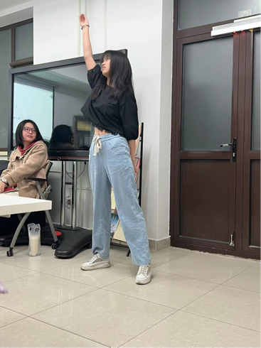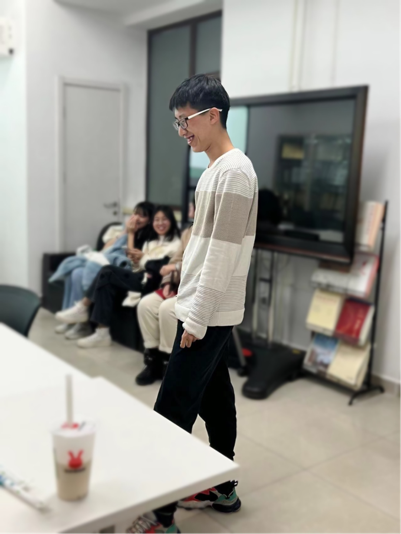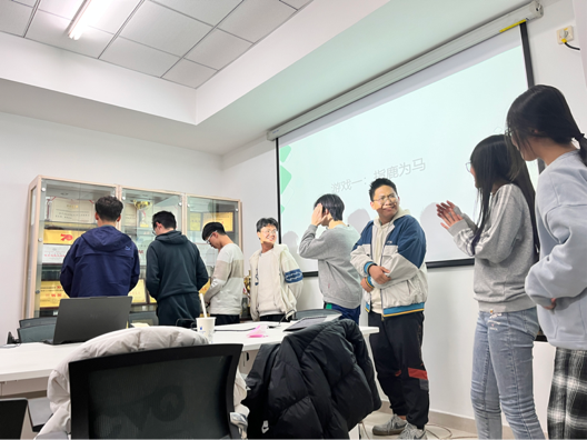 首先我们进行了一个益智小游戏——指鹿为马。由第一位同学表演一套动作,依次传给下一位同学,直至第八位,再由第八位到第一位依次说出自己看到的动作的寓意。