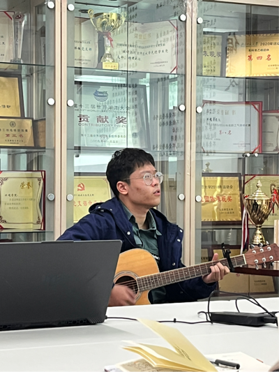 接下来的节目分别是由李天麒同学带来的《东风破》和孔雨箫同学带来的原创歌曲《偏爱》。李天麒同学的歌声,婉转悠扬,而孔雨箫同学的吉他弹唱原创歌曲温柔和谐,展现出英国正版365官方网站学生会成员的多才多艺。
