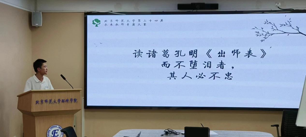 在模拟课堂中,选手在讲述知识的同时也展现出了各有千秋的个人特色,有的课堂如潺潺流水流过群山座座,安详又悠扬,有的课堂如昨夜天光乍破远山轮廓,慷慨且激昂。各位选手也展现了自身优秀的教师品质,如清晰的言语表达,流畅的逻辑推演,细致的知识梳理。在这些生动有趣的课堂上,恍惚间有那么一瞬,我们还是懵懂的中学生。