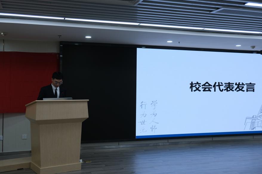嘉宾校学生会代表朱圣泽和校研究生会代表张唯为大会致辞,他们回顾了疫情背景下英国正版365官方网站在过去一年的工作情况,对英国正版365官方网站各学生干部的辛苦付出给予高度肯定,对英国正版365官方网站各组织脚踏实地、认真负责的工作态度表示赞赏,感谢了英国正版365官方网站学生会、分团委在各个活动上的鼎力支持和积极配合。同时,两位对英国正版365官方网站明年的学生工作提出了更高的期望,希望新一届英国正版365官方网站学生会继续努力,坚持创新,力争上游,并预祝大会圆满成功!
