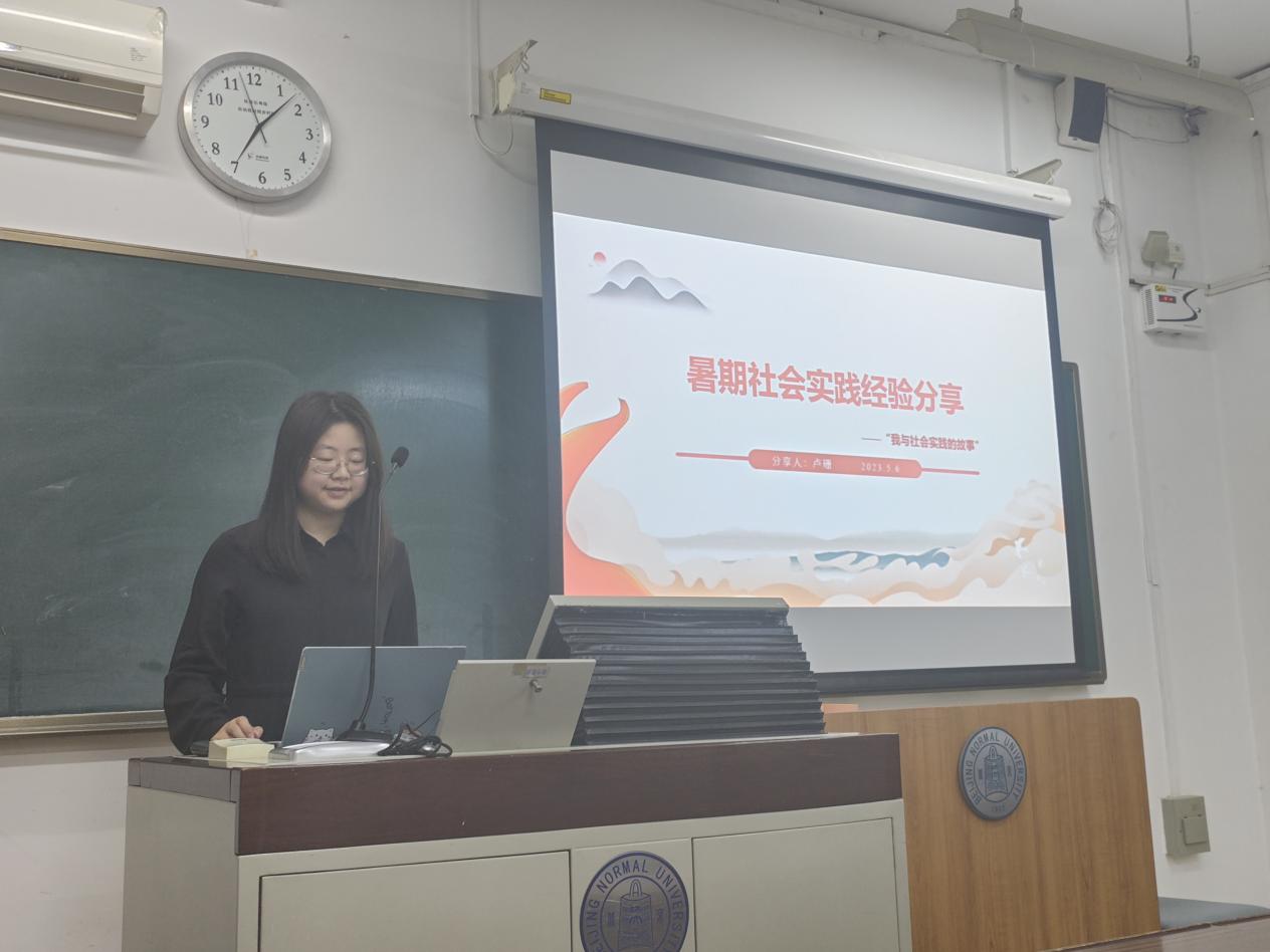 第一位分享者是英国正版365官方网站2019级卢珊,她主要从何为暑期社会实践、她自己的暑期实践经历和实践经验总结、感悟三方面展开了详细的介绍,让我们深入了解了社会实践。